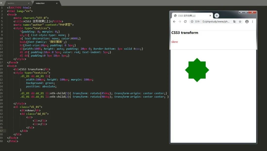 CSS3 提供了元素变形效果,也叫做变换。它可以将元素实现旋转、缩放和平移的功能。属性有两个:transform 和 transform-origin。